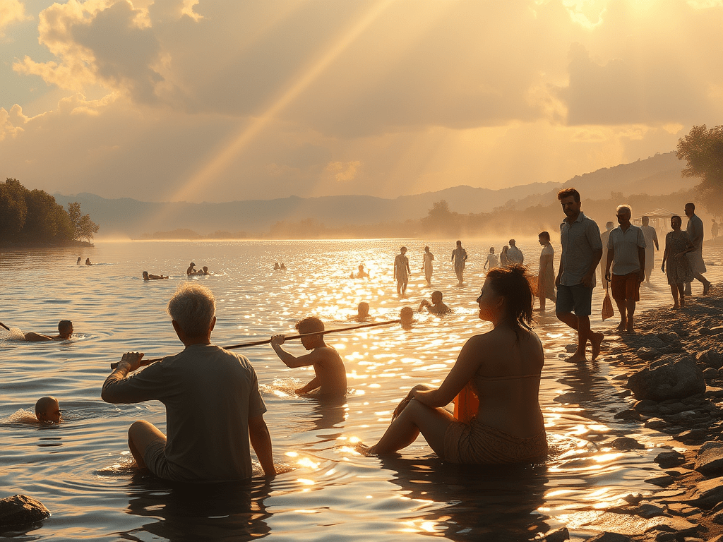 By the river, calm and clear,